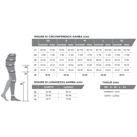 - Classe 1 (18-21 mmHg): raccomandata per la profilassi delle malattie venose nei pazienti a rischio, disturbi funzionali alle gambe, varici iniziali in gravidanza e profilassi di trombosi ed embolie;