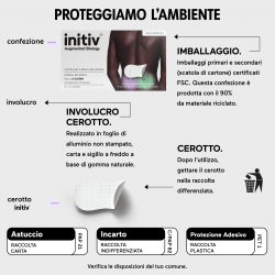 Opella Healthcare Initiv Cerotto Dolore alla Schiena è un dispositivo medico, ultra sottile e flessibile che utilizza una tecnologia in grado di potenziare il processo di guarigione. Realizzato in tessuto non tessuto di polipropilene, rivestito con uno strato adesivo contenente un minerale che è in grado di riflettere l'energia a infrarossi emessa dal corpo. Tale materiale non contiene nanoparticelle e non penetra attraverso la cute. Il corpo assorbe ed emette fisiologicamente energia a infrarossi. Lo strato minerale ReflecTech, presente nel cerotto, trattiene e a sua volta riflette l'energia emessa dal corpo sull'area dolorante. La tecnologia su cui si basa Initiv aumenta la microcircolazione del sangue, migliora la mobilità e l'apporto di ossigeno nella zona dolorante per alleviare il dolore. Non contiene farmaci, resiste all'acqua ed è inodore. Non ha effetto riscaldante o rinfrescante.