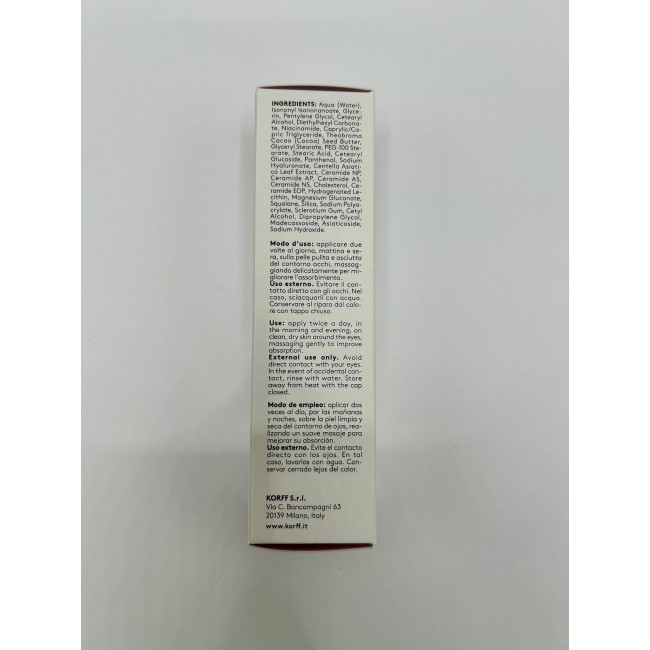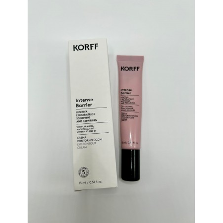 Korff intense barrier contorno occhi è untrattamento lenitivo e anti rossore a base di ceramidi e vitamine B3 e B5.