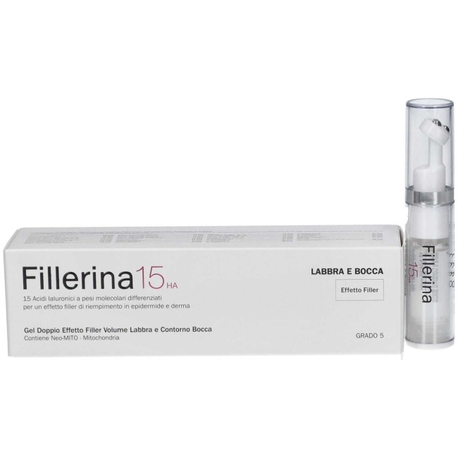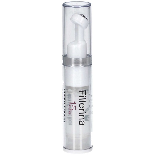 Labo Fillerina 15 Ha Gel base trattamento dermo-cosmetico in gel a doppio effetto filler con speciale applicatore, per favorire l’aumento del volume delle labbra e la definizione del contorno della bocca. L’effetto riempitivo maggiorato è sostenuto da 15 acidi ialuronici ad alta penetrazione dall’esterno e dai 2 potenti precursori dell’acido ialuronico dall’interno, acetyl glucosamine e glucuronic acid. Oltre al componente specifico per la zona labbra (pseudoalteromonas ferment extract) sono inoltre presenti 7 molecole Plate-Like, il Complesso AQP3 e il complesso Neo-Mito Mitochondria per migliorare le risorse energetiche della pelle sostenendo la protezione dell’mtDNA. Tutti gli attivi sono stati testati ex-vivo con celle di Franz per la loro capacità di penetrare gli strati cutanei dai più esterni ai più profondi. Con 5 Enhancer. Non contiene profumo. Grado 5.
