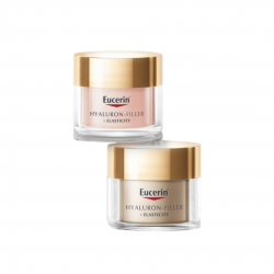 Eucerin Cofanetto Hyaluron-Filler + Elasticity è un prezioso cofanetto anti-age pensato per ravvivare il colorito e donare elasticità alla pelle, idratandola in profondità. Il cofanetto contiene Eucerin Hyaluron-Filler Crema Giorno Rosé SPF30 e Eucerin Hyaluron-Filler Crema Notte. La Crema Giorno Rosé SPF30 ha una texture leggermente rosata, sviluppata per contrastare l'aspetto grigio e stanco della pelle e per conferirle un aspetto naturale, fresco e luminoso. L'acido Ialuronico idrata la pelle in combinazione alla stimolazione di collagene, ridona elasticità alla pelle. La Crema Notte riduce le macchie e migliora l'elasticità della pelle raggiungendo gli strati più profondi della cute. La crema giorno è adatta alle pelle normali e miste. La crema notte è adatta a tutte le tipologie di pelli. Dermatologicamente testate.