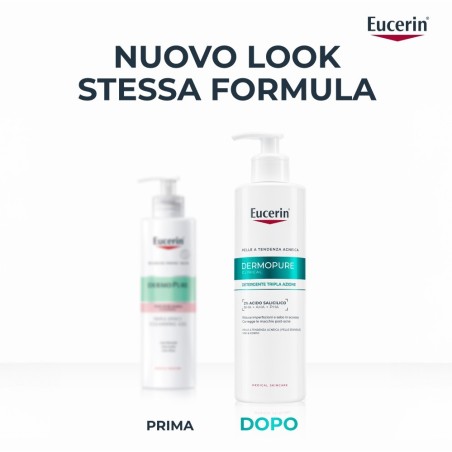 Eucerin dermopure è un detergente tripla azione per il viso e il corpo purificante,riduce le imperfezioni, corregge le macchie e riduce il sebo in eccesso.