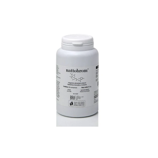 Curcumina (Curcuma longa L.) rizoma e.s. 95% curcuminoidi totali, bromelina 2.500 GDU/g; agente di carica: cellulosa microcristallina, idrossipropilcellulosa; estratto di soia fermentata (nattochinasi) 20.000/28.000 FU/g; agenti antiagglomeranti: latte di noce di cocco, amido di patata, gomma di guar, gomma di acacia, pepe nero frutti e.s. (Piper nigrum L.).