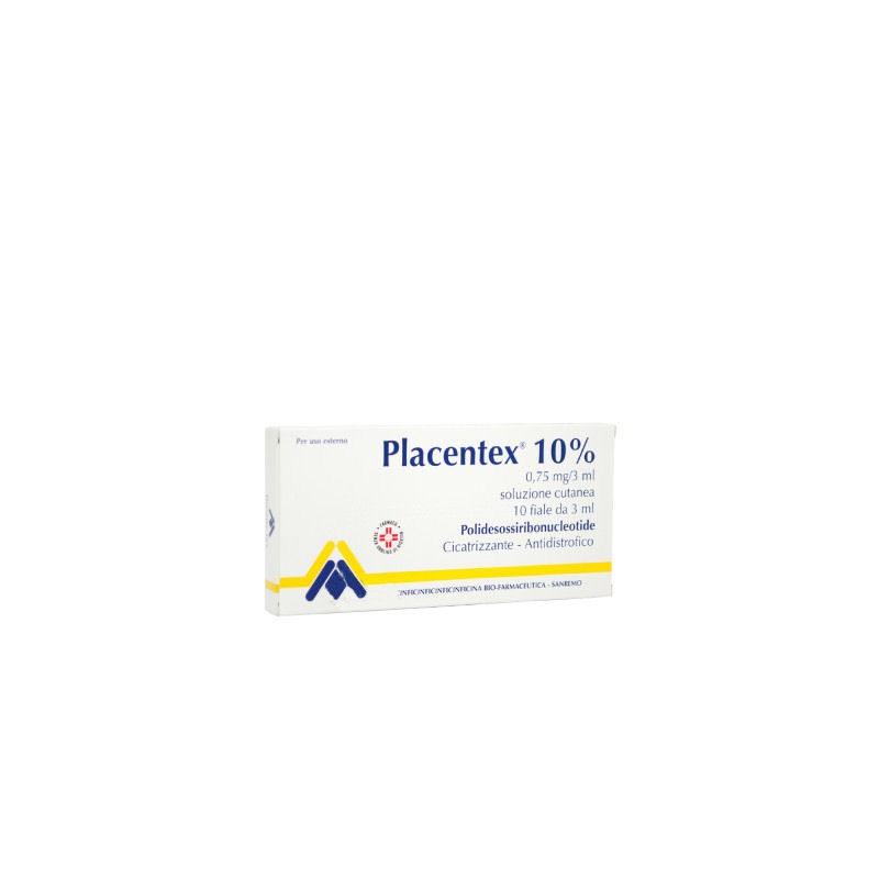 Placentex Soluzione Cutanea 10Fiale da 3 Ml è un medicinale a base di polidesossiribonucleotide, con attività cicatrizzante e antidistrofica; è indicato per il trattamento di ferite e ulcere cutanee.