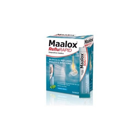 Maalox reflurapid è indicato nel trattamento dei sintomi causati dal reflusso gastro-esofageo.