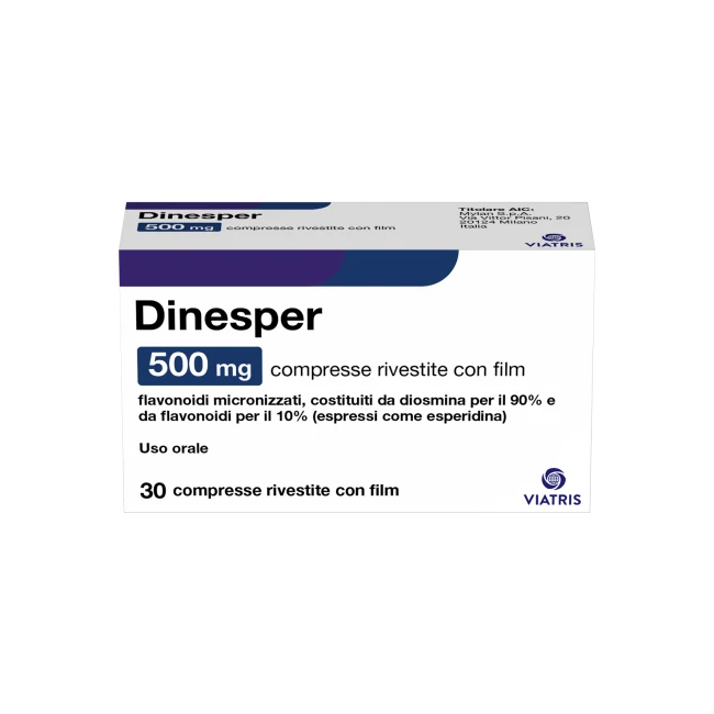 Viatris Dinesper 500 Mg Compresse Rivestite Con Film Flavonoidi Micronizzati, Costituiti Da Diosmina Per Il 90% E Da Flavonoidi