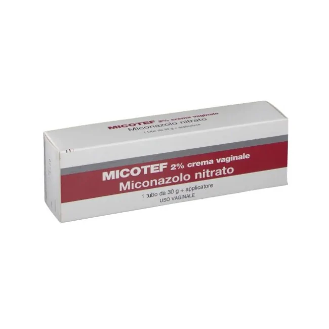 Micotef 2 percento crema vaginale Teofarma è un antimicotico a base di miconazolo nitrato indicato per il trattamento locale delle infezioni vulvovaginali da funghi, in particolare da Candida, con azione mirata su prurito, bruciore, arrossamento e perdite.