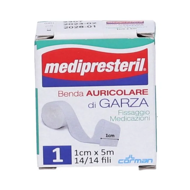 Dettagli Corman Benda Auricolare Garza Medipresteril 12/8 Fu M5x1cm 14/14 Fili