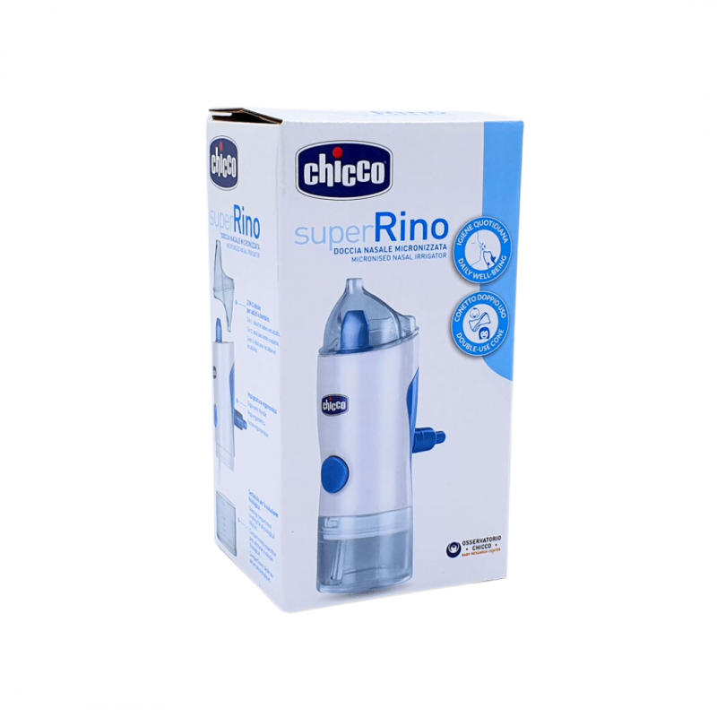 Chicco Super Rino Doccia Nasale Igienizzante è un prodotto per la prevenzione e la pulizia delle cavità nasale e delle vie respiratorie dei più piccoli. Il prodotto assicura la massima pulizia e igienizzazione delle vie aeree prevendo qualsiasi tipo di infezione e infiammazione. Particolarmente indicato nella pulizia da muco per i piccoli che ancora non sanno soffiare il naso. Rimuove le secrezioni nasali idratando le mucose.