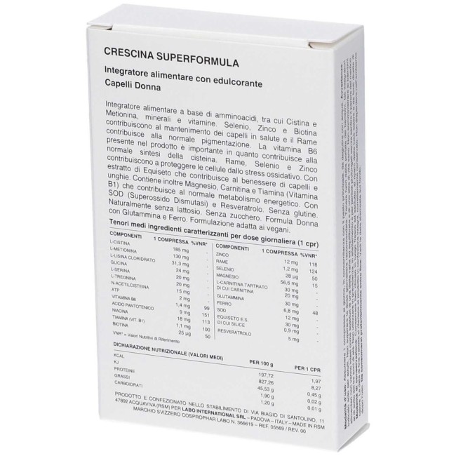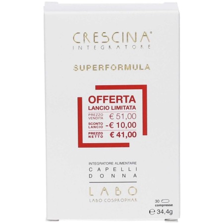 Labo Crescina Ri-crescita Superformula Donna è un integratore alimentare a base di vitamine e minerali ideale per favorire la crescita dei capelli.