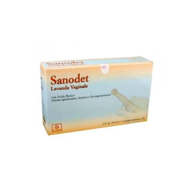 Lavanda vaginale a base di principi che rispettano la fisiologia delicata della mucosa vaginale. Il prodotto deterge la mucosa lasciando una piacevole sensazione di freschezza e di pulizia. L'attività igienica cosmetica di Sanodet sviluppa un'azione lenitiva e decongestionante anche in presenza di patologie vaginali e in associazione al trattamento specifico. L'uso prolungato di Sanodet è ben tollerato dalla mucosa vaginale.