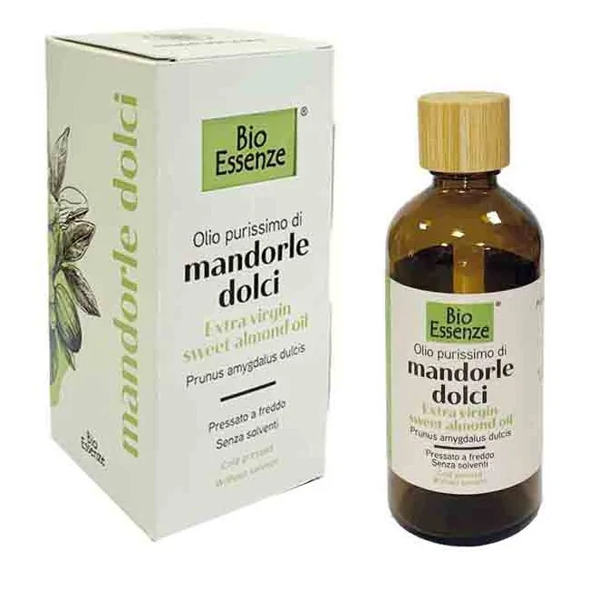 Olio di mandorle dolci. Con le sue proprietà emollienti, è ideale per massaggi e per il fisiologico sostegno alla normale elasticità della pelle. Può essere utilizzato anche sulla cute e sui capelli secchi per impacchi ammorbidenti e idratanti.