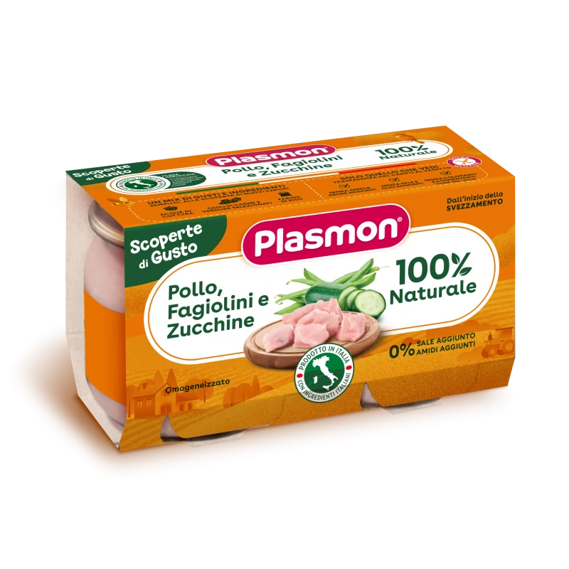 Plasmon Omogeneizzati Pollo Fagiolini Zucchine 2 Pezzi Da 120 G