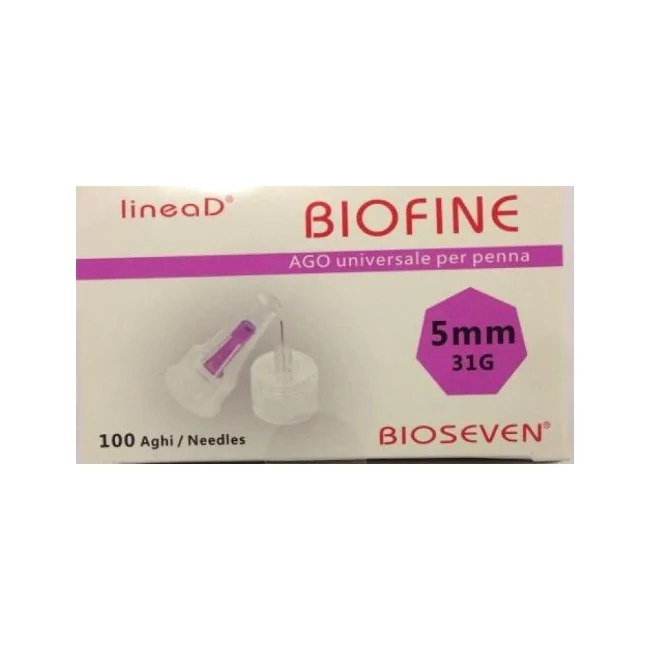 Bioseven Ago Per Penna Da Insulina Linea D Biofine Gauge 31 Lunghezza 5 Mm 100 Pezzi