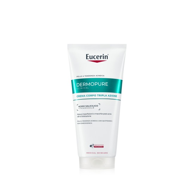 Eucerin DermoPure Crema Corpo Tripla Azione è un prodotto formulato per contrastare e prevenire la comparsa di imperfezioni e macchie sulla pelle.
