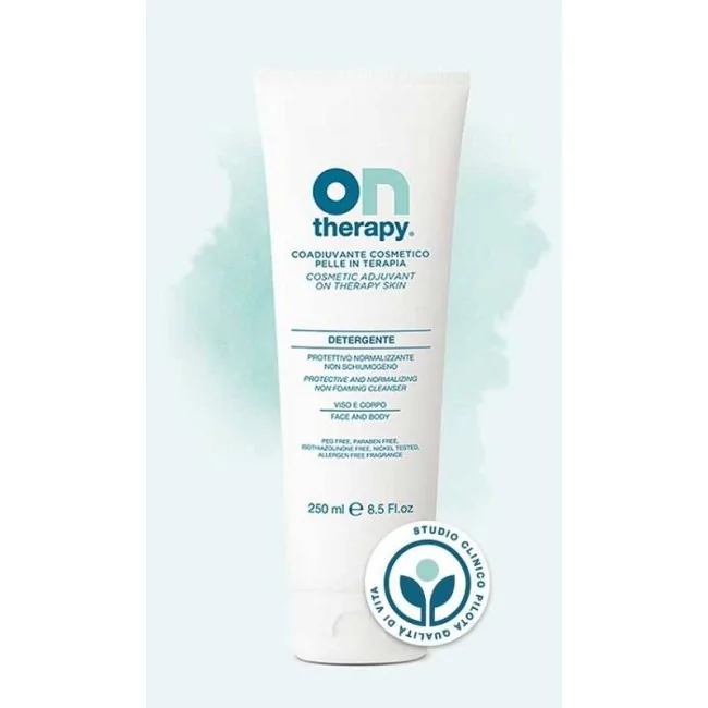 Detergente delicato per la pelle anche in terapia oncologica. Emulsione fluida, non schiumogena, che deterge la pelle per affinità, senza intaccare lo strato idrolipidico e predispone la cute a ricevere i benefici dell'applicazione degli altri prodotti. Ontherapy Detergente Delicato è ideale per l'igiene quotidiana di ogni tipo di pelle: normale, secca ed estremamente secca, sensibile con arrossamenti, irritazioni e stati desquamativi. Elevata tollerabilità fin dalla nascita - Test Clinico Pediatrico. Ontherapy Detergente è alla base di ogni protocollo che affronta i problemi della pelle, anche in terapia oncologica e farmacologica. Deterge delicatamente la pelle anche in presenza di xerosi, eruzioni maculo papulari (rash cutaneo), eritemi da irraggiamento, fotosensibilizzazione. Può essere utilizzato inoltre in caso di eritrodisestesia palmoplantare (sindrome mano piede) e desquamazioni palmoplantari, oltre ad alterazioni delle unghie e ipercheratosi. Con ingredienti di derivazione naturale, il detergente Ontherapy lascia la pelle pulita, morbida e piacevolmente idratata.