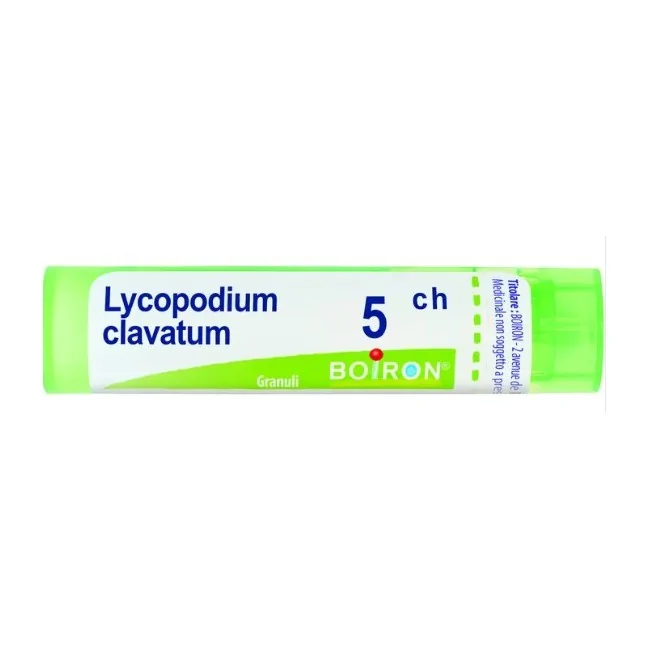 Boiron Lycopodium Clavatum 5CH è un medicinale omeopatico in granuli a diluizione 5CH, utilizzato nell’ambito dell’omeopatia su indicazione di medico o omeopata. I granuli si sciolgono lentamente in bocca e risultano pratici per un’assunzione modulabile. Formato: tubo granuli da 4 g, circa 80 granuli.