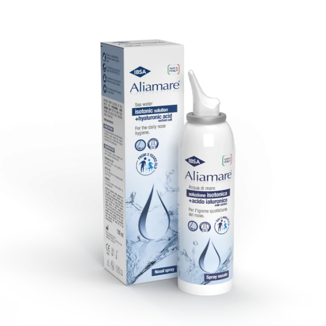 Aliamare associa l’azione benefica e fluidificante dell’acqua marina proveniente dall’Arcipelago di Bréhat, luogo naturalistico della Bretagna classificato Natura 2000, all’azione dell’acido ialuronico, che grazie alla sua capacità di legare e trattenere acqua, è in grado di idratare la mucosa e favorire la cicatrizzazione di eventuali microlesioni. La diluizione dell’acqua di mare fino a concentrazione isotonica rende inoltre Aliamare non irritante.